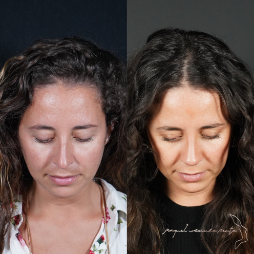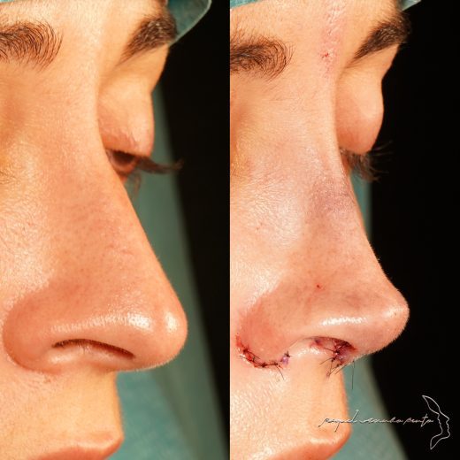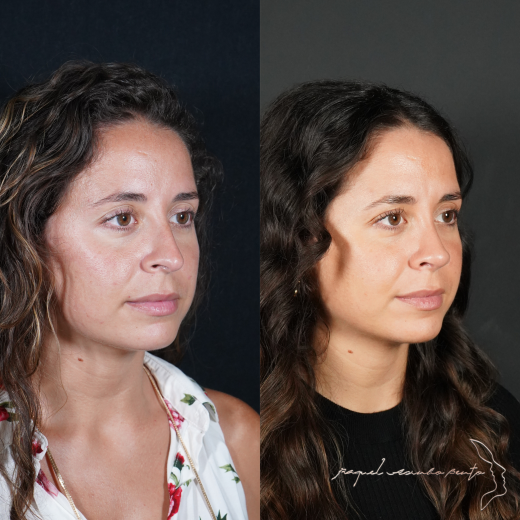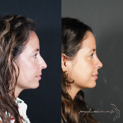 Um nariz em perfeita harmonia com o rosto da paciente, com um dorso com uma rampa suave e a ponta do nariz ligeiramente rodada (empinada).