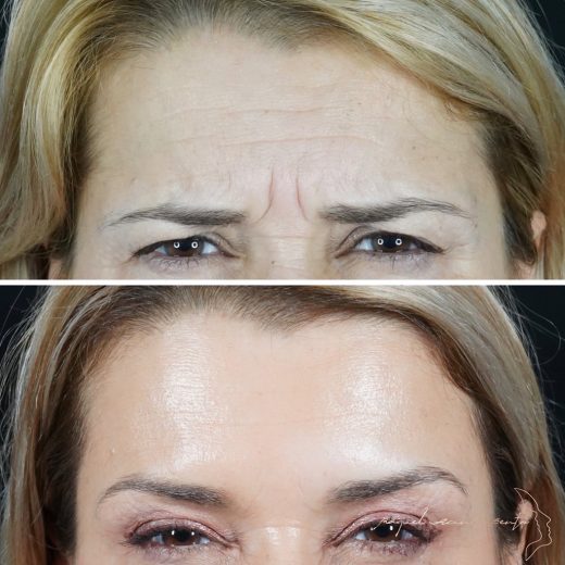 Na medicina estética, a toxina botulínica é utilizada mais frequentemente para tratar o terço superior da face, nomeadamente, a região da testa e periocular